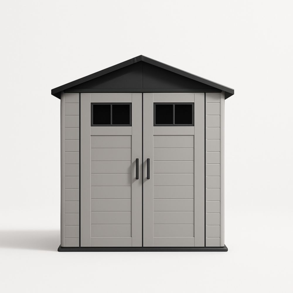 Capanno portaoggetti in resina grigia con doppia porta