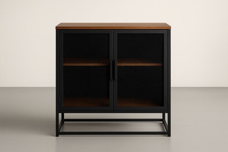 Credenza in Alluminio e Legno Massello con Ante in Rete 80x40x90 cm