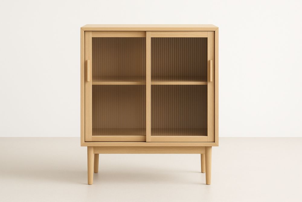 Credenza in legno con ante in vetro rigato 80x40x100 cm