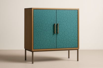 Credenza in Legno con Pannelli in Tessuto Verde