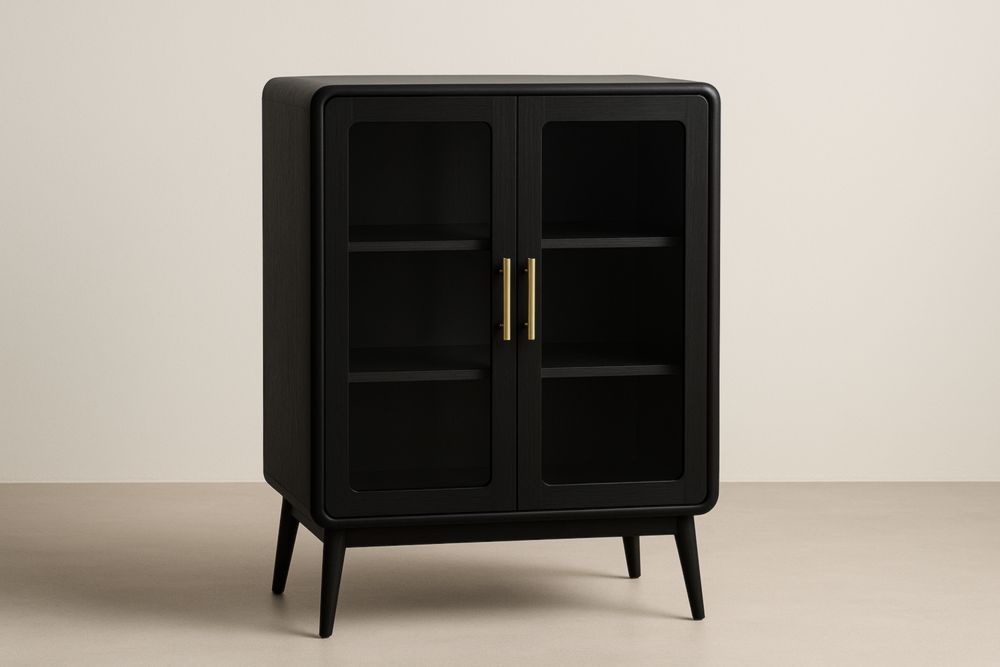 Credenza in Legno e Vetro Nera 80x40x110 cm