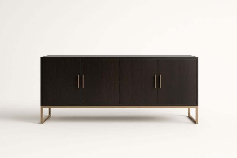 Credenza in Legno Massello Marrone Scuro con Base in Alluminio Dorato