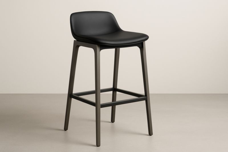 Sgabello da Bar in Poliuretano Nero con Struttura in Acciaio, Altezza Seduta 75 cm